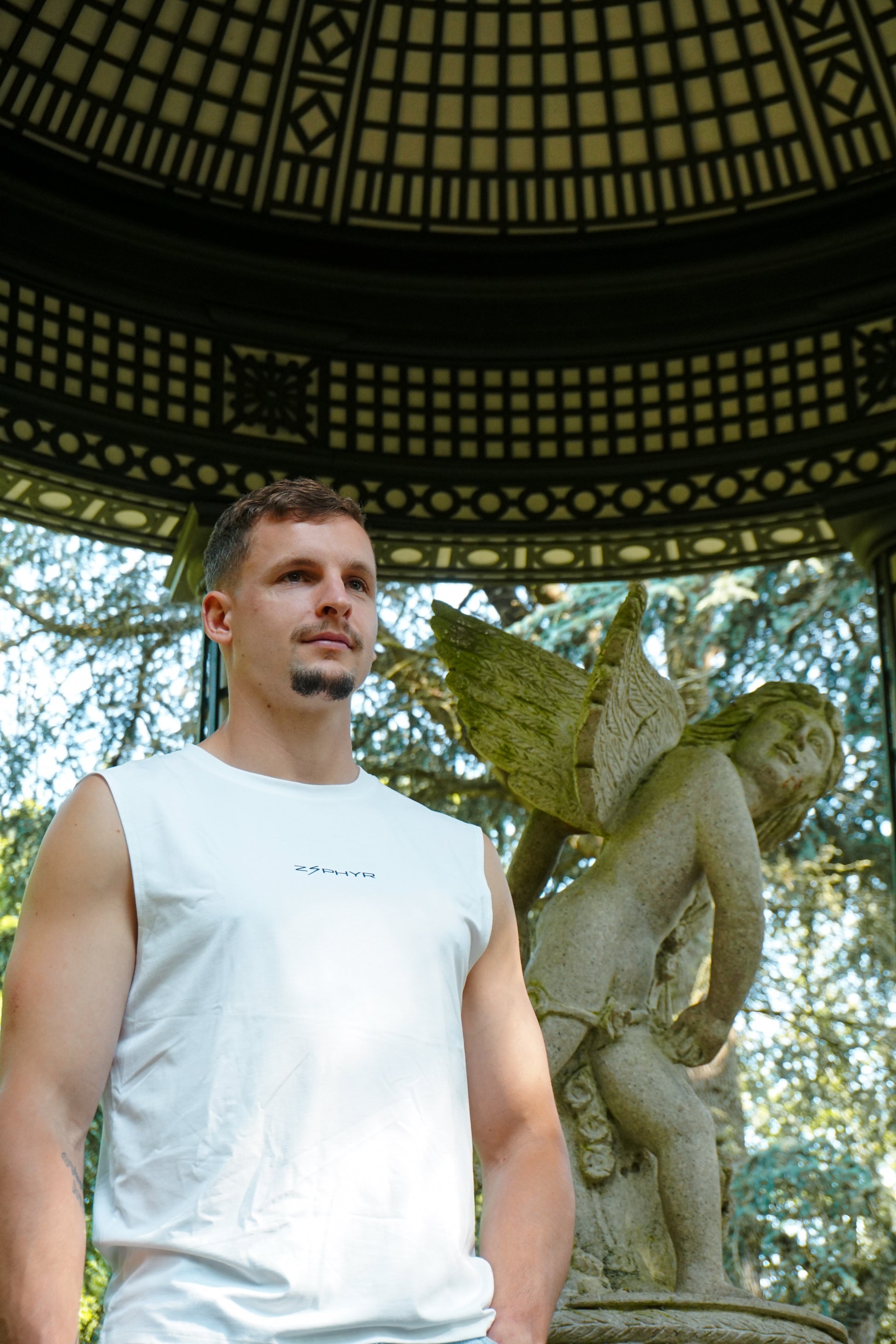 Le design représente ce labyrinthe : symbole de choix, de destin et de dépassement de soi. Léger et respirant, ce débardeur incarne ceux qui osent s’élever, sans jamais perdre le cap.