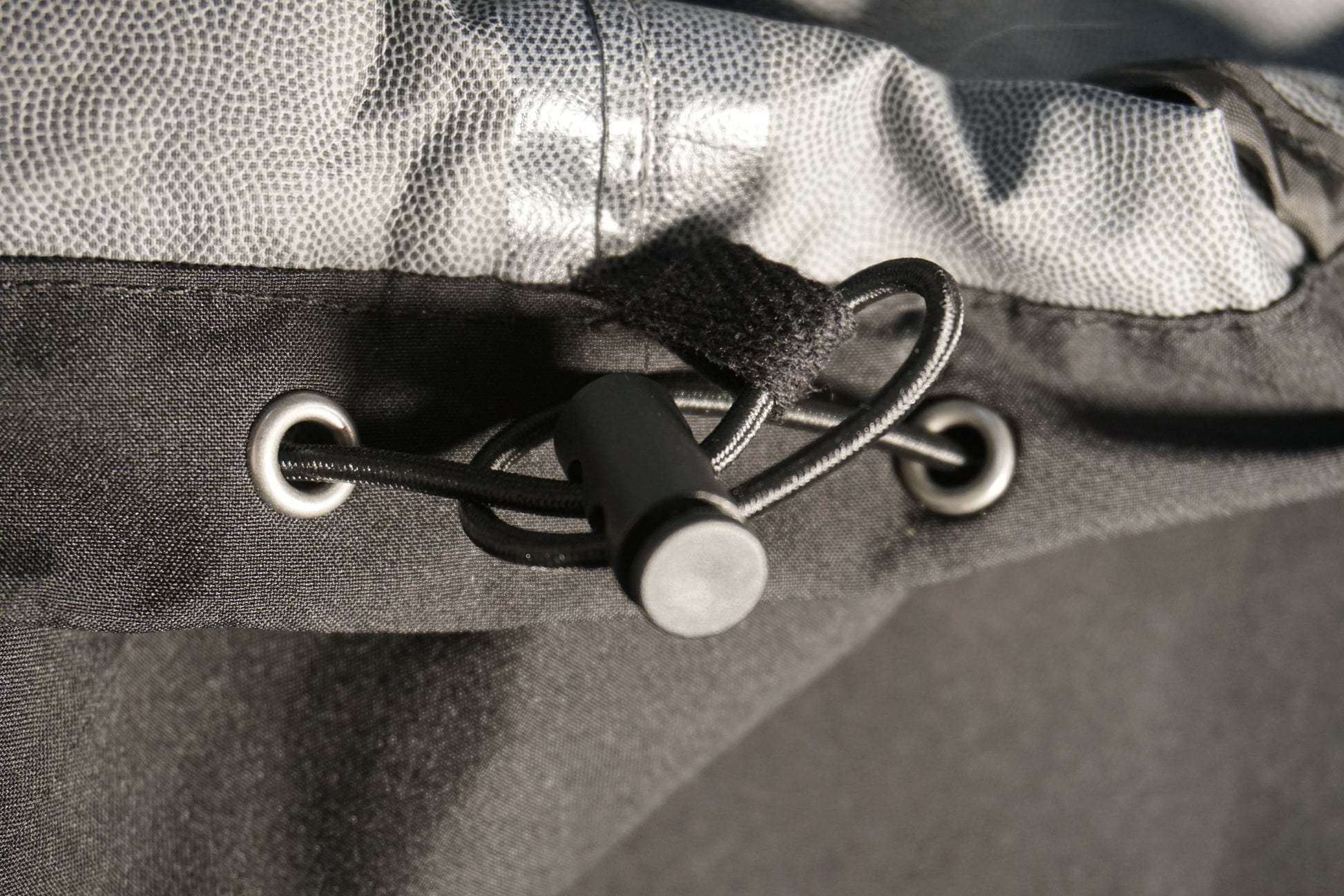 - Bas de manches et bas de veste équipés de cordon de serrage avec stoppeurs recyclés.